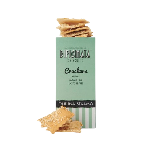 Bolacha com finas capas de água e sal e com sementes de sésamo.