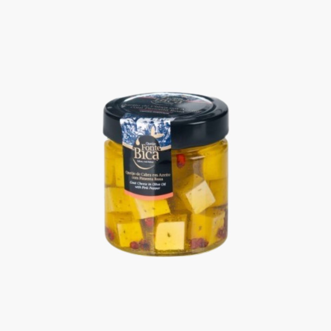 Combinação de azeite e pimenta rosa que cria um leve picante ao queijo de cabra.