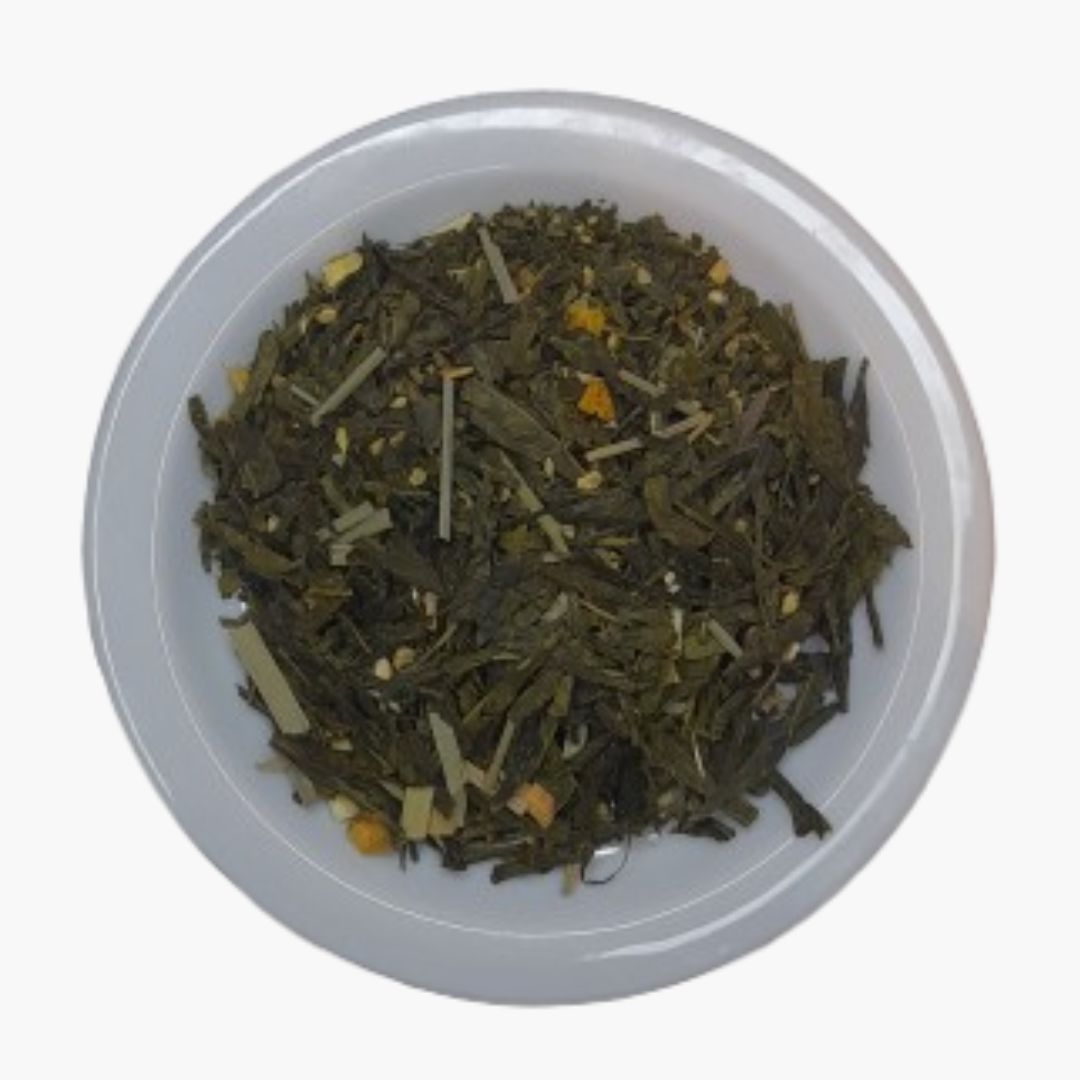 Ingredientes: Verde Sencha, Erva Príncipe, Gengibre, Limão